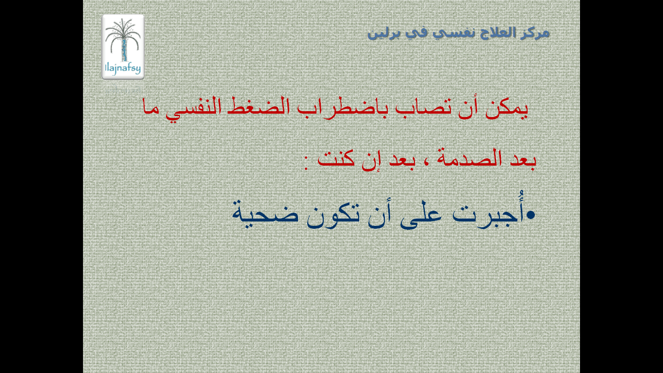 اضطرابات ما بعد الصدمة أبريل 29, 2014 اضطرابات ما بعد الصدمة للحصول على جلسات علاج نفسي مجاناً أونلاين برجاء التسجيل من خلال هذا الرابط http://tinyurl.com/kmldxtn نرحب بك في أي وقت فريق علاج نفسي – مركز برلين مشاركة اترك تعليقاً إلغاء الردلن يتم نشر عنوان بريدك الإلكتروني. الحقول الإلزامية مشار إليها بـ *التعليق * الاسم * البريد الإلكتروني * الموقع الإلكتروني احفظ اسمي، بريدي الإلكتروني، والموقع الإلكتروني في هذا المتصفح لاستخدامها المرة المقبلة في تعليقي.
