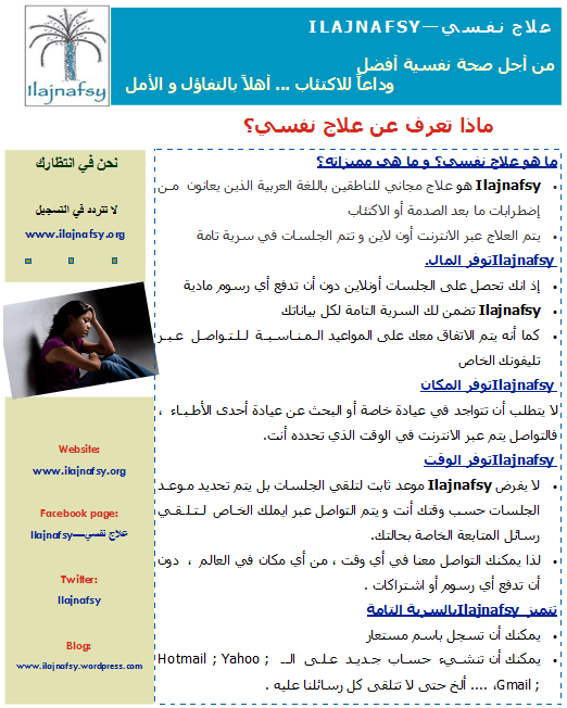 يمكنك تسجيل بياناتك من خلال هذا الرابط http://ilajnafsy.bzfo.de/portal/registrierung-webtherapie/